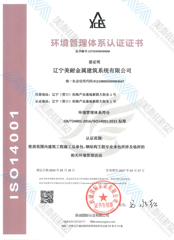 遼寧美耐金屬建筑系統(tǒng)有限公司位于遼寧(營(yíng)口)沿海產(chǎn)業(yè)基地,專(zhuān)注于預(yù)制金屬建筑系統(tǒng)領(lǐng)域,是一家集工業(yè)建筑設(shè)計(jì)、制作、施工及相關(guān)的技術(shù)咨詢(xún)與服務(wù)為一體的綜合性服務(wù)企業(yè)。作為國(guó)家鋼結(jié)構(gòu)協(xié)會(huì)會(huì)員、中國(guó)建筑金屬結(jié)構(gòu)協(xié)會(huì)會(huì)員單位與國(guó)家高新技術(shù)企業(yè),美耐建筑集建筑工程施工總承包、鋼結(jié)構(gòu)工程專(zhuān)業(yè)承包等多種資質(zhì)于一身,并擁有22項(xiàng)鋼結(jié)構(gòu)建筑領(lǐng)域?qū)@?項(xiàng)軟件著作權(quán)。